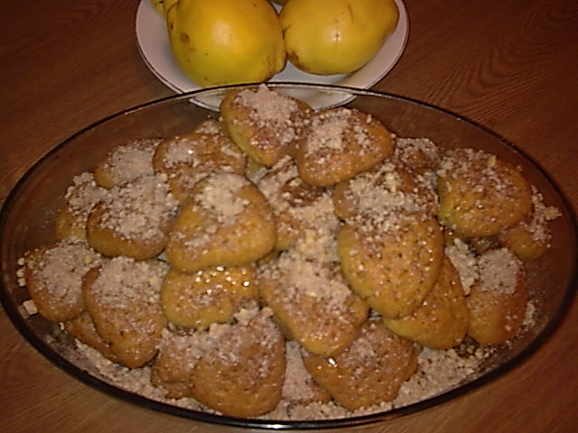 Τα μεταφέρουμε σε πιατέλα και πασπαλίζουμε με καρυδόψιχα.
